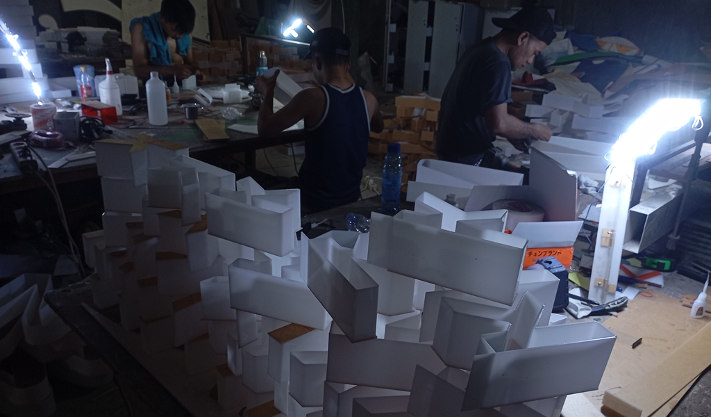 Dengan Luas Workshop Yang Luas dan Proper, Kami mampu memproduksi huruf timbul dan media advertising lainnya dengan skala besar. Dari ratusan sampai ribuan Set, dengan berbagai size dan ukuran Huruf yang dibuat Workshop kami sangat mumpuni untuk itu.